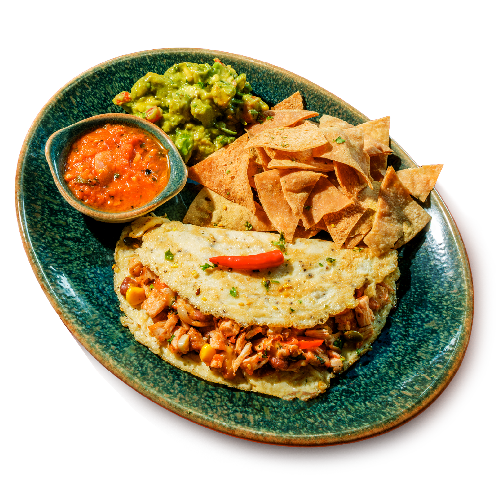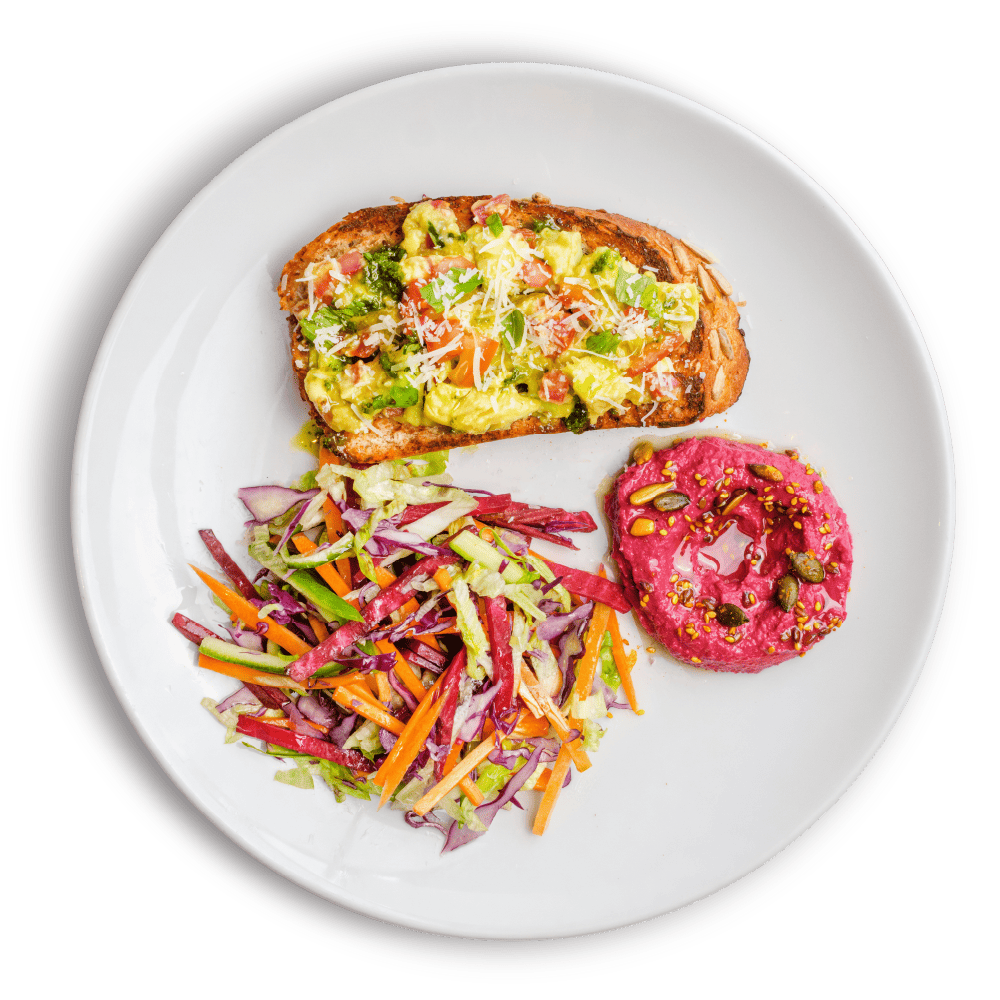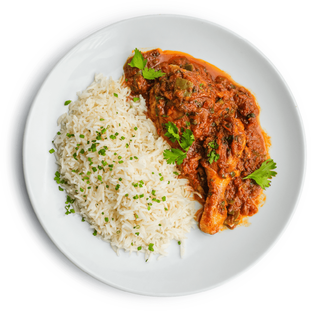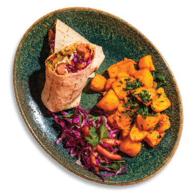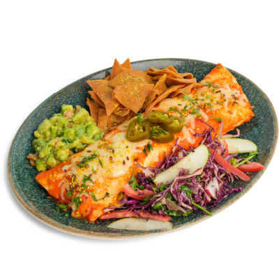"description": "Teriyaki chicken paired with fragrant fried rice, Asian red cabbage slaw, pickled carrots, radish, & guacamole.",