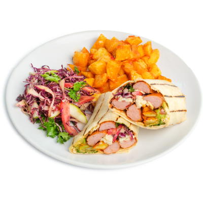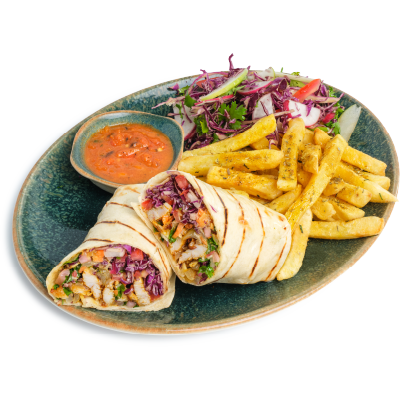 "description": "Teriyaki chicken paired with fragrant fried rice, Korean\r\ncucumber salad, pickled carrots, radish, & guacamole",